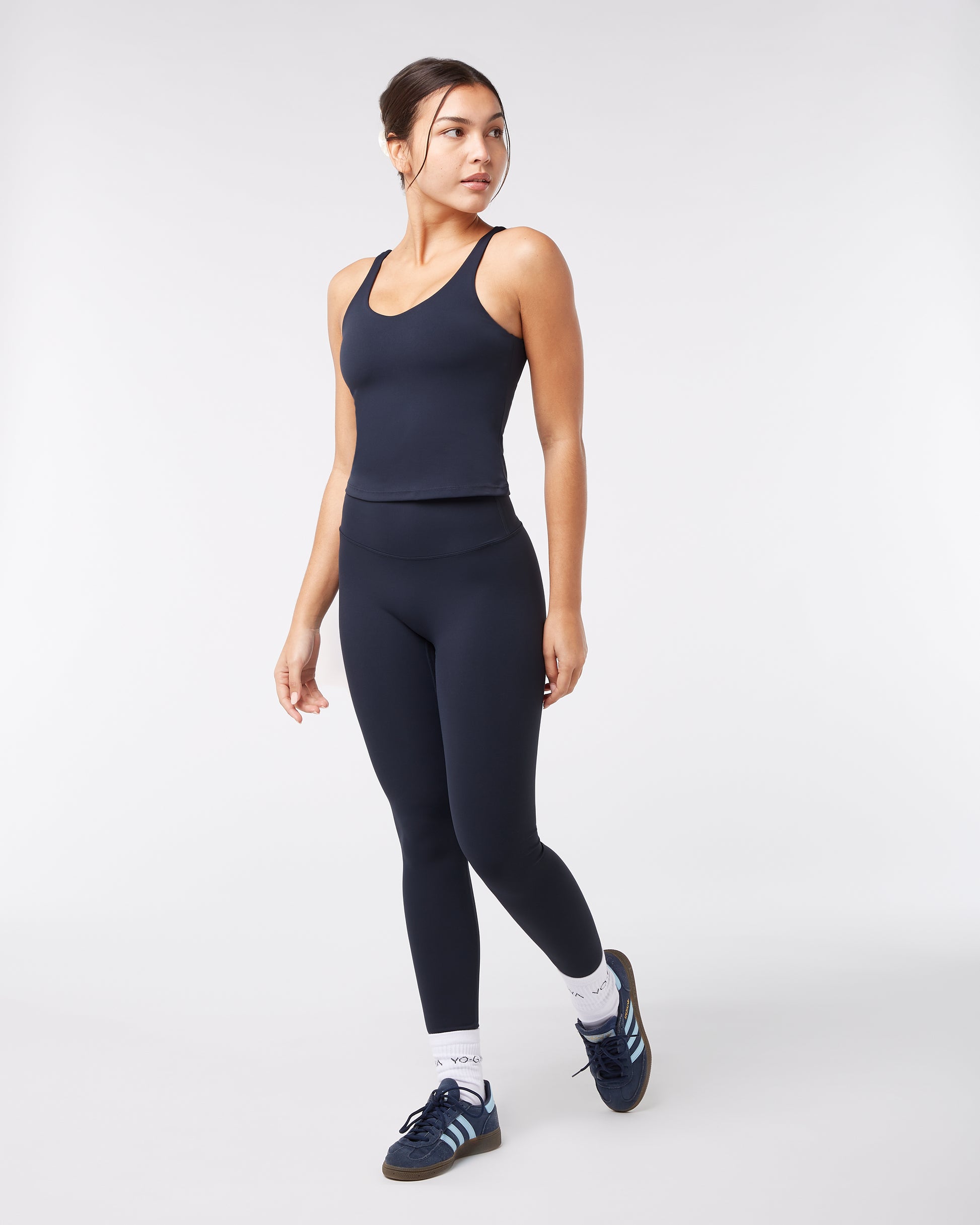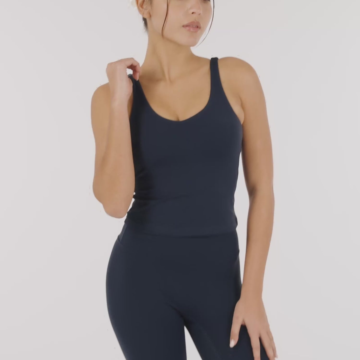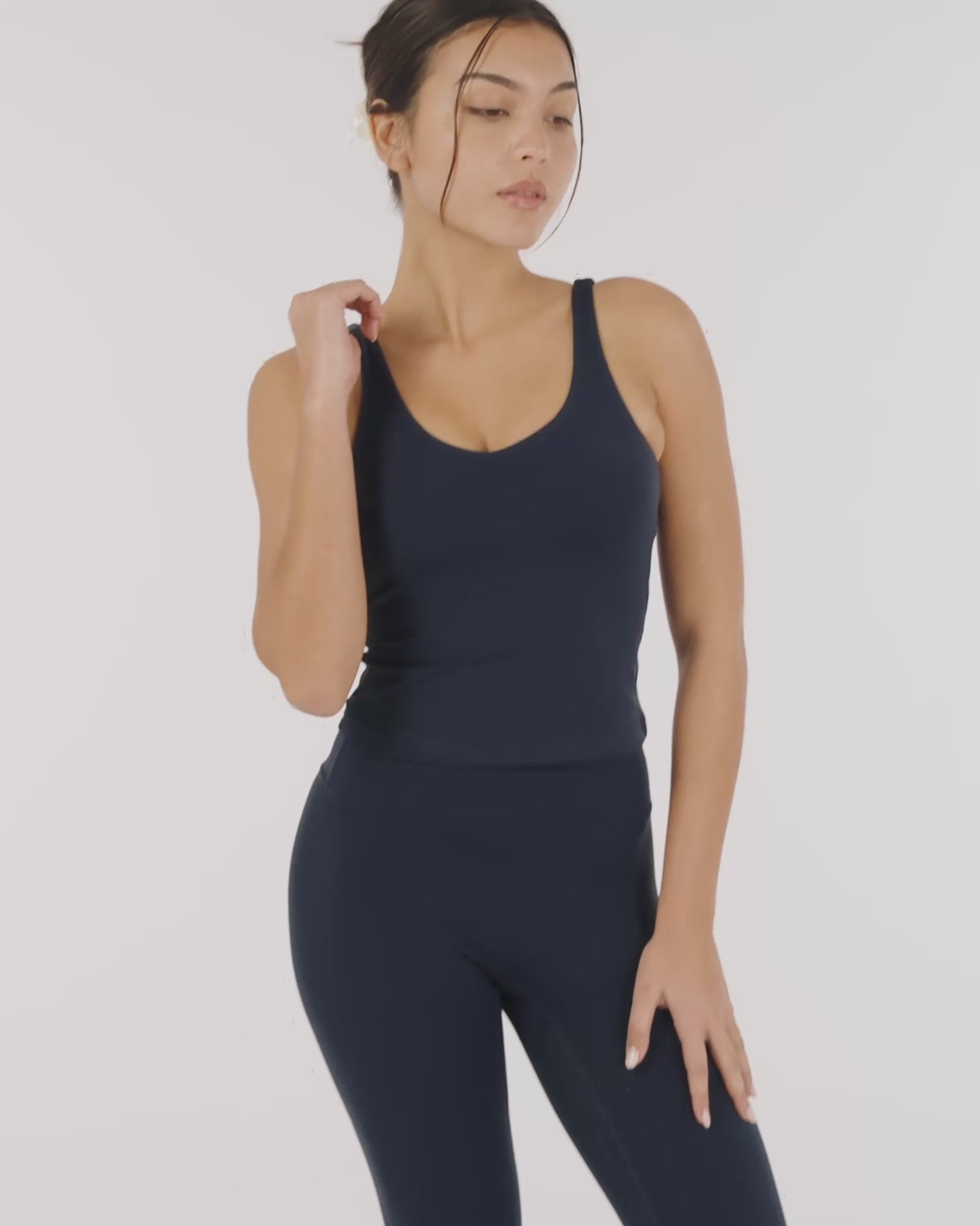 The YO-GAYA Sculpting Top blends functionality with a bold, modern look. Designed with a built-in bra and stylish lower cutout, this top supports your movements while standing out in and out of the studio.
